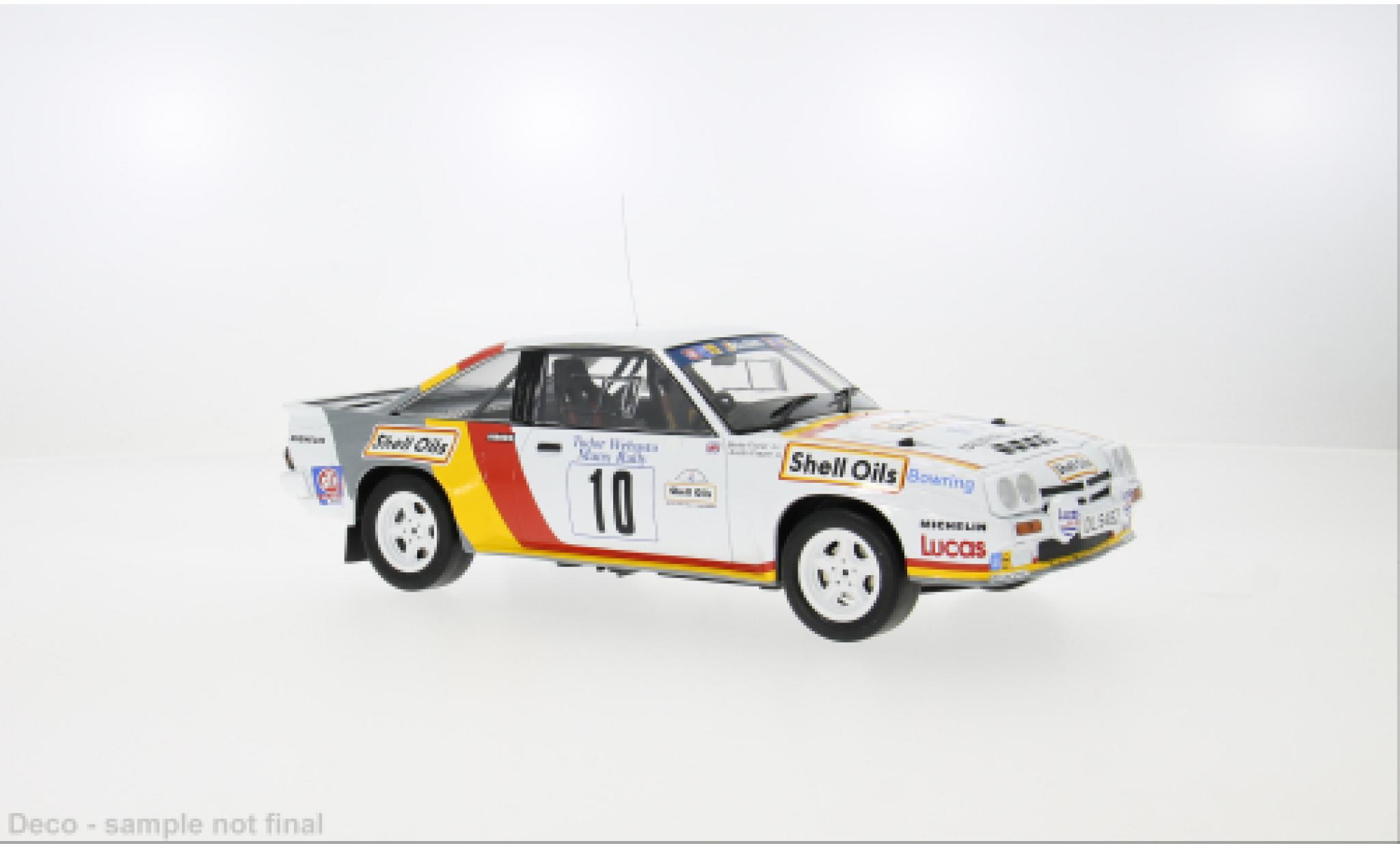 YOU ARE HERE : DIECAST CAR > OPEL DIECAST MODEL CARS > OPEL MANTA DIECAST MODEL CARS > Opel Manta 1/18 IXO B 400 Rallye Manx 1985 #10 B.Fisher/A.Frazer 1:18